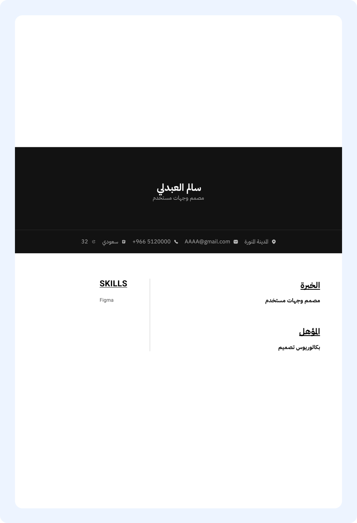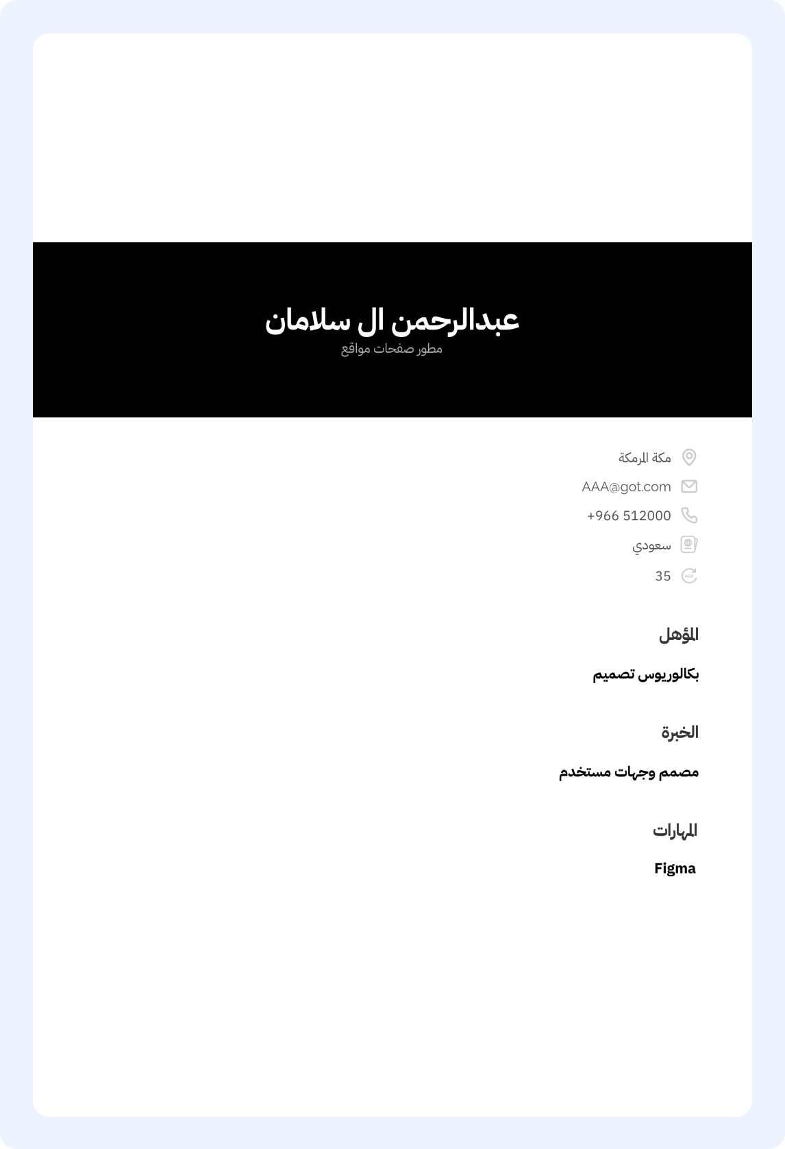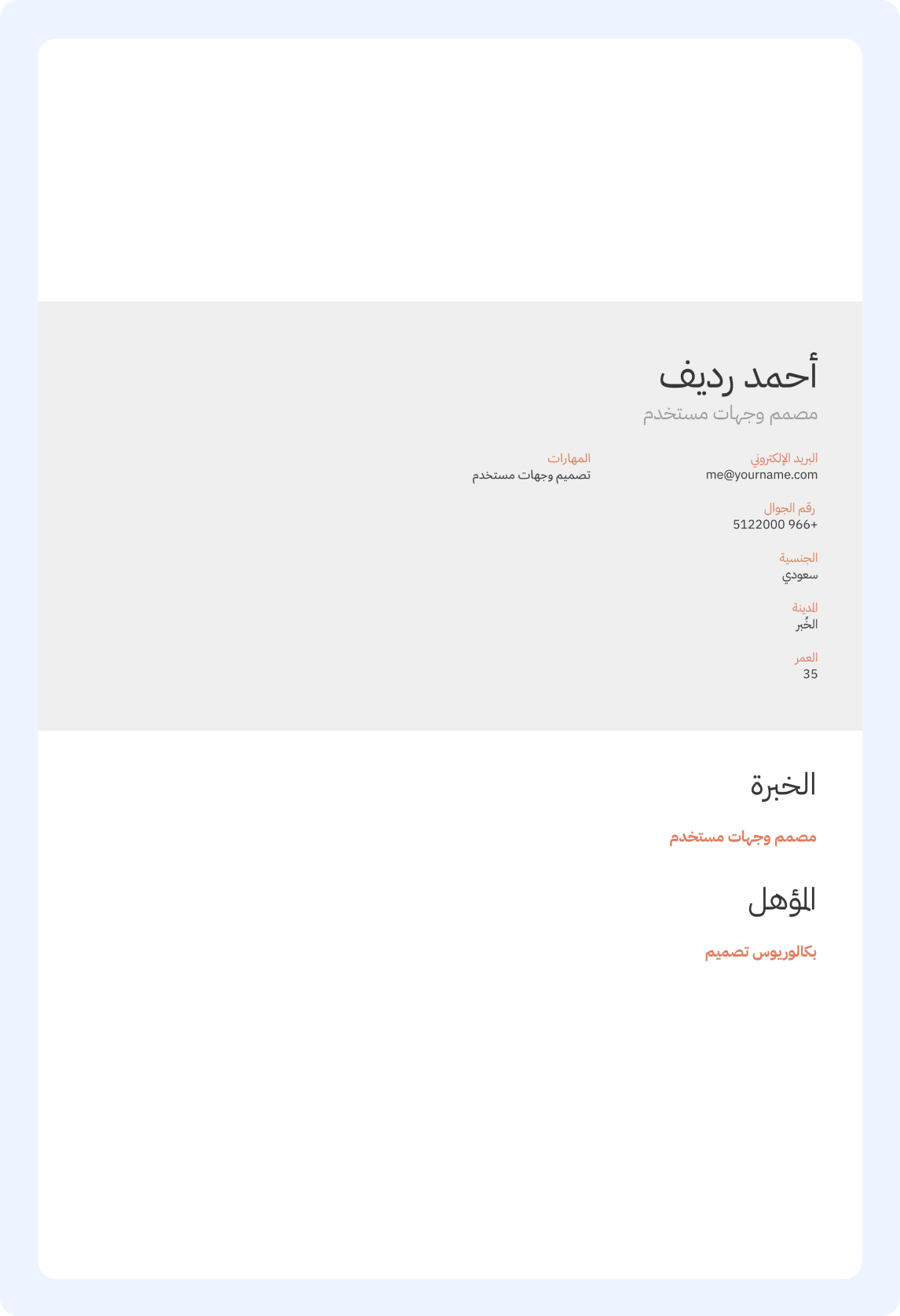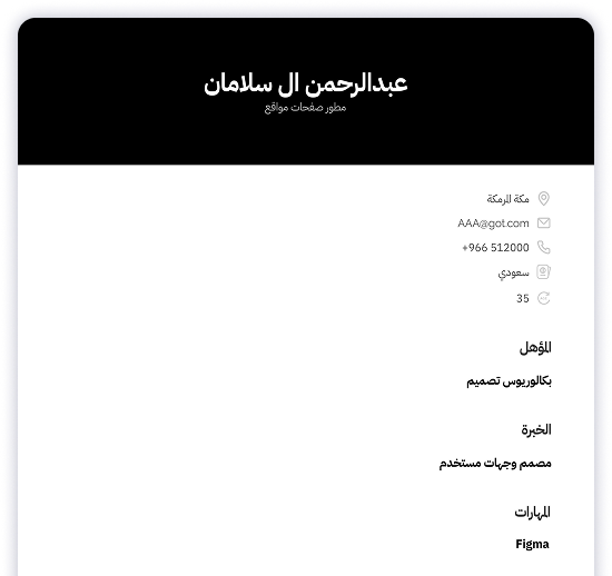 تميّز مع قوالب عصرية مصممة باحترافية لتلفت أنظار أصحاب العمل. اختر القالب اللي يناسبك وخصصه بسهولة مع منشئنا الذكي.