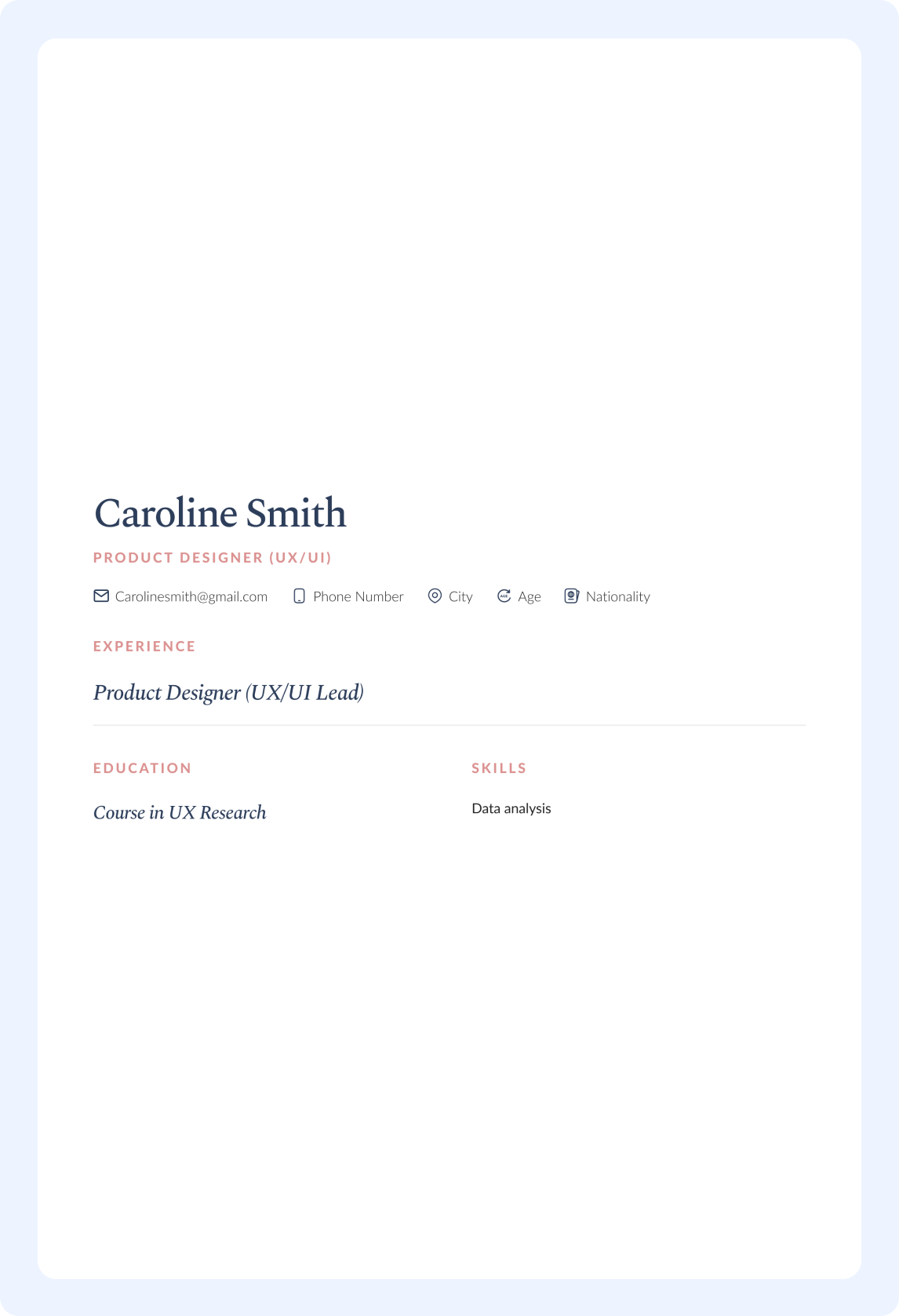 املأ معلوماتك الشخصية وخبراتك ومهاراتك من خلال نموذج ذكي وسهل الاستخدام، يساعدك على إبراز نقاط قوتك بوضوح.